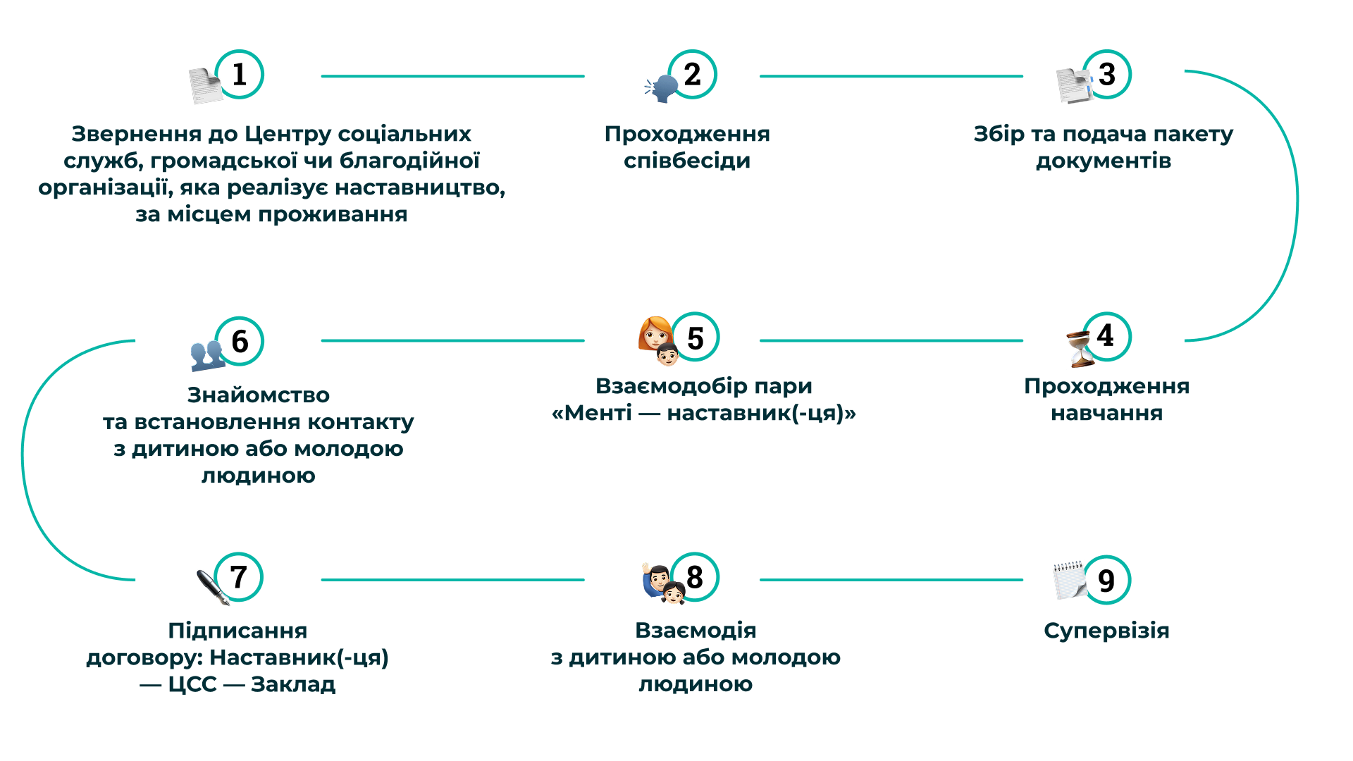 4. Супровід на всіх етапах — від збору документів і навчання до знайомства з дитиною, яка потребує наставника.